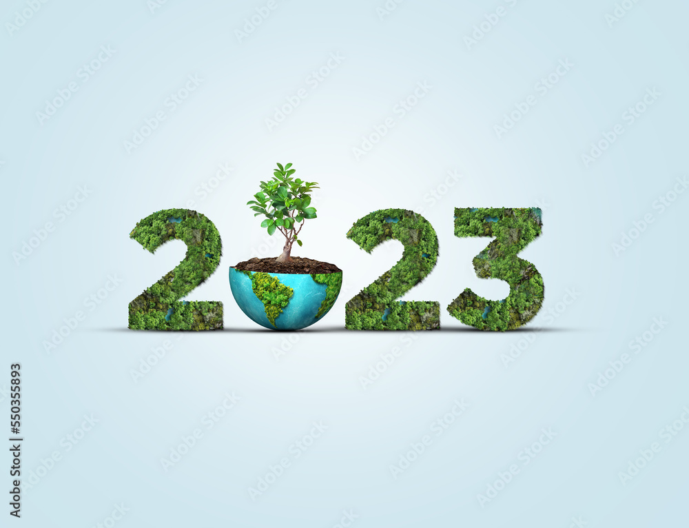 New Year 2023 Green Recycling And Save Our Planet And Earth Environment World Water Day 2023 Earth Day 2023 3d Concept Stock Illustration Adobe Stock